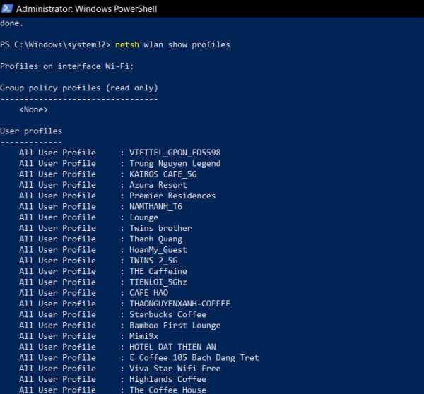 - Xem lại mật khẩu Wifi đã kết nối bằng PowerShell